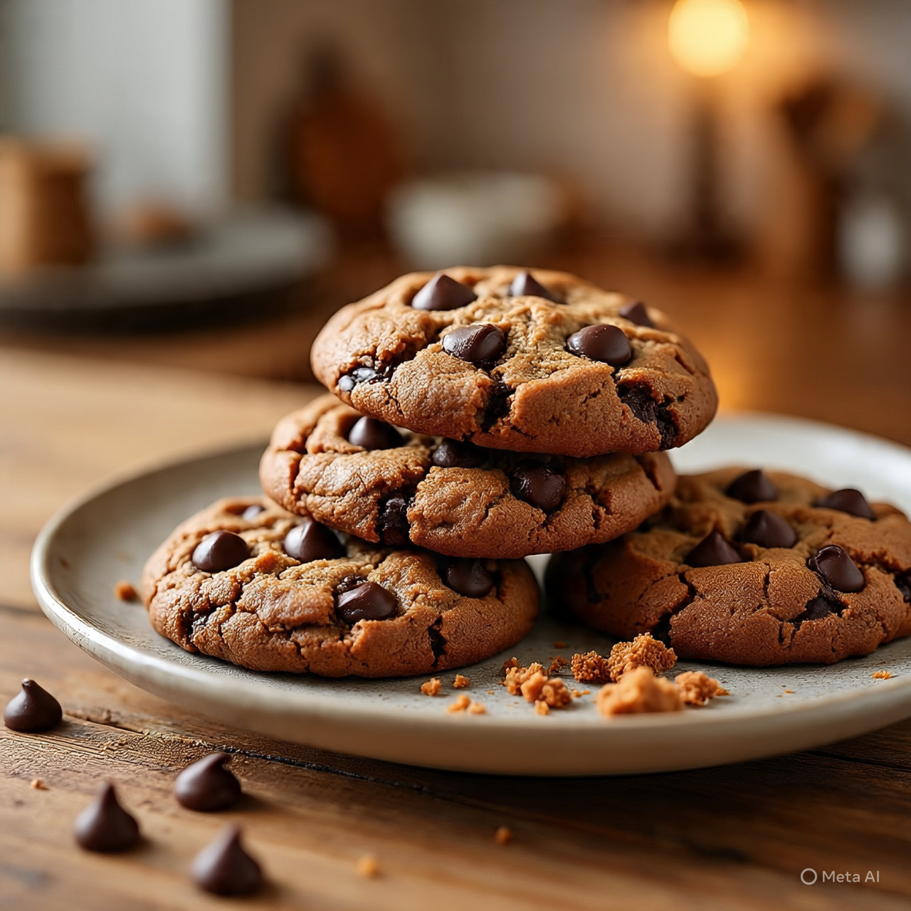 चॉकलेट चिप कुकीज़ में कुरकुरी कुकी के साथ छोटे चॉकलेट चिप्स मिलाए जाते हैं। इसका स्वाद मीठा और चॉकलेटी होता है। इसे चाय या स्नैक के रूप में खाया जाता है।