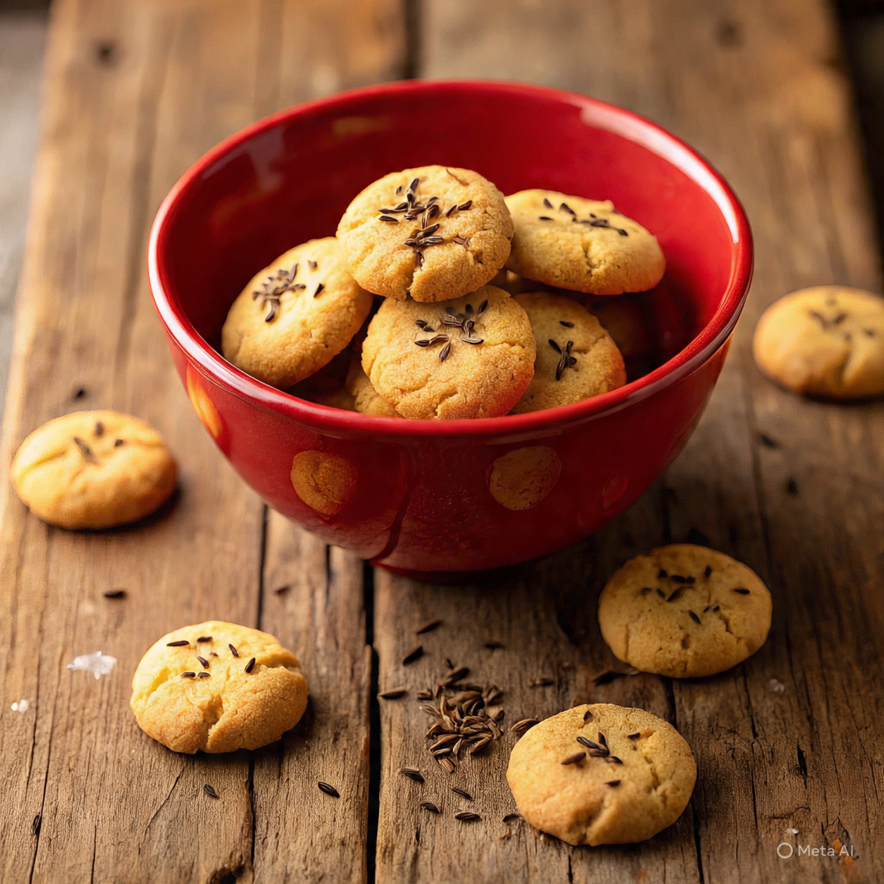 जीरा कुकीज़ में जीरे का हल्का नमकीन स्वाद होता है। यह कुकीज़ चाय के साथ खाने के लिए उपयुक्त हैं।